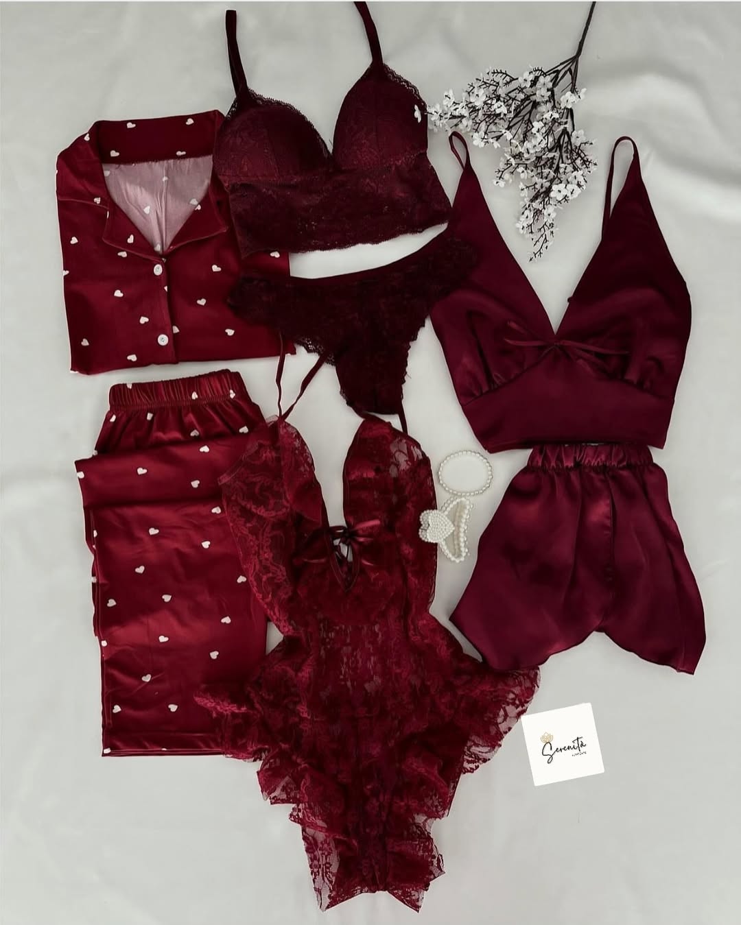 7Pcs Heart Printed Nighty & Lingerie Set