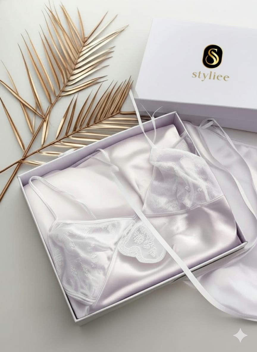 8 Pcs Heart Printed Imported Silk Nighty Bridal Set