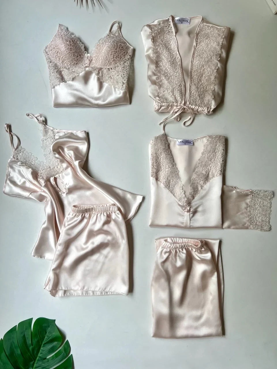 Silk Detailed 6-Piece Satin Nightgown Dressing Gown Set