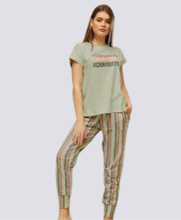 Soulmate Green With Lining Style Pajama Half Sleeves Printed Night Suit